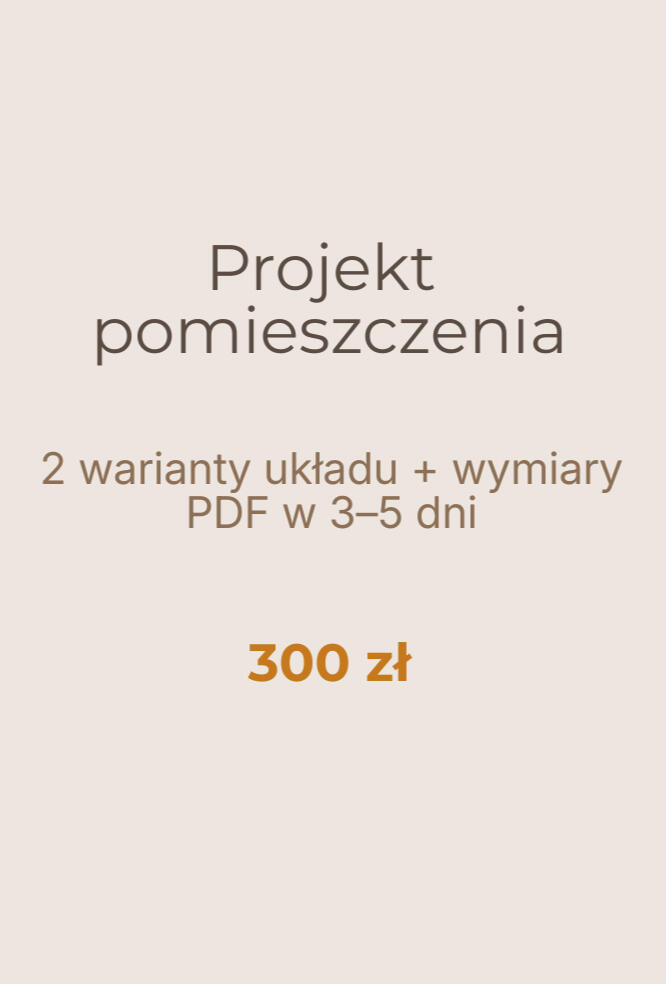 2–3 warianty funkcjonalne mieszkania lub domu. Gotowy PDF w 3–5 dni.